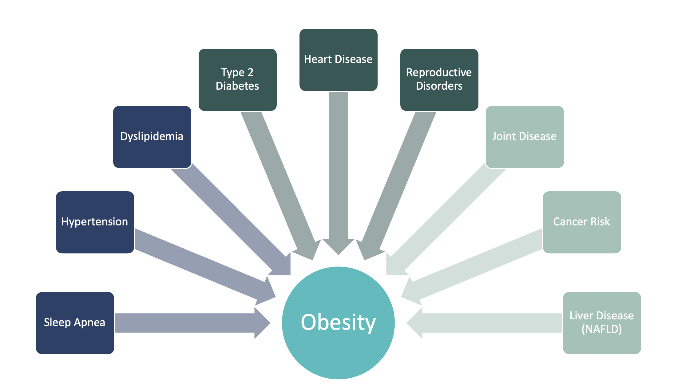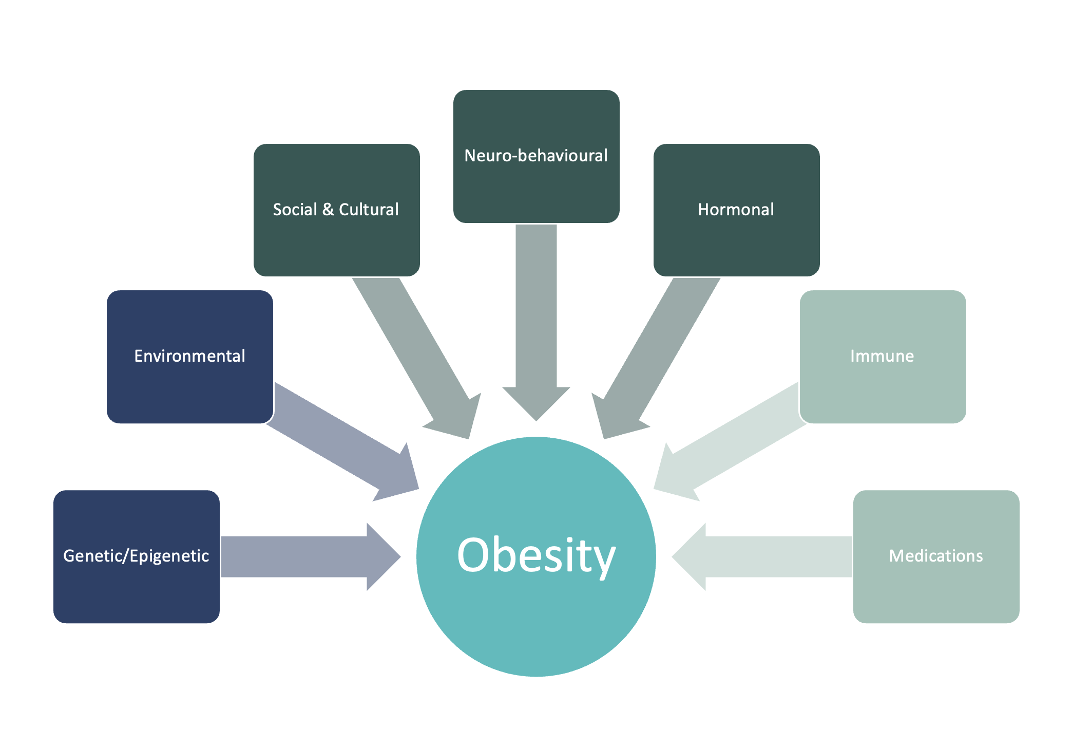 Obesity is determined by a combination of BMI (Body Mass Index), Body Fat Percentage and Waist Circumference.